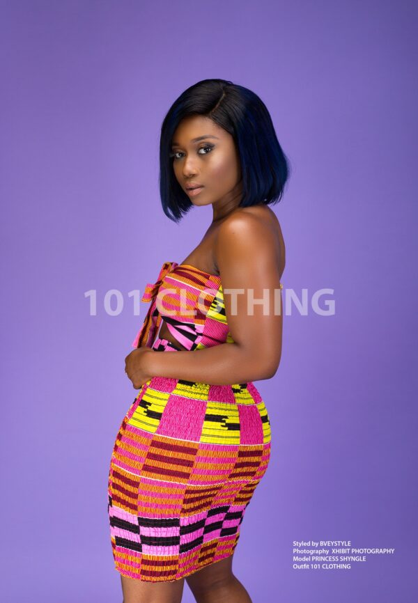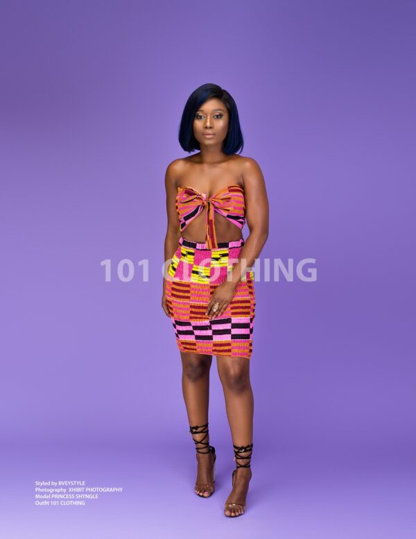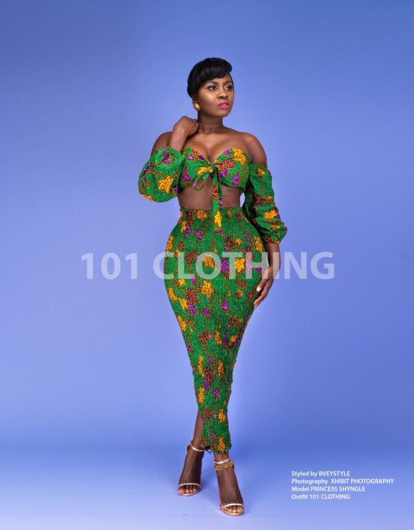 A well tailored African wax print crop top with stretchy skirt which styles up every Occassion.