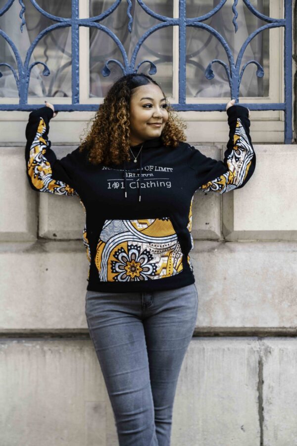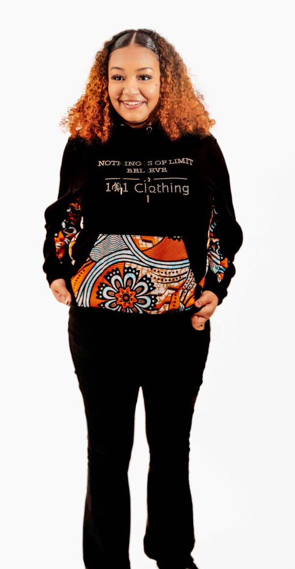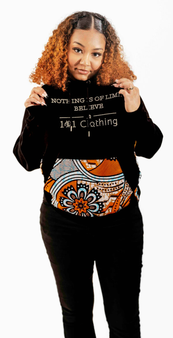 Discover the “Nothing is Off Limit: Believe” series hoodie, a unique blend of vibrant African fabric and contemporary design. This hoodie symbolizes limitless possibilities and unwavering belief, making it a standout piece in any wardrobe. Its unisex fit ensures it can be effortlessly worn by anyone, offering both comfort and style. Perfect for any occasion, this hoodie is more than just apparel—it’s a statement of confidence and inspiration. Embrace the spirit of boundless potential with this one-of-a-kind hoodie.