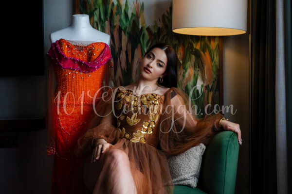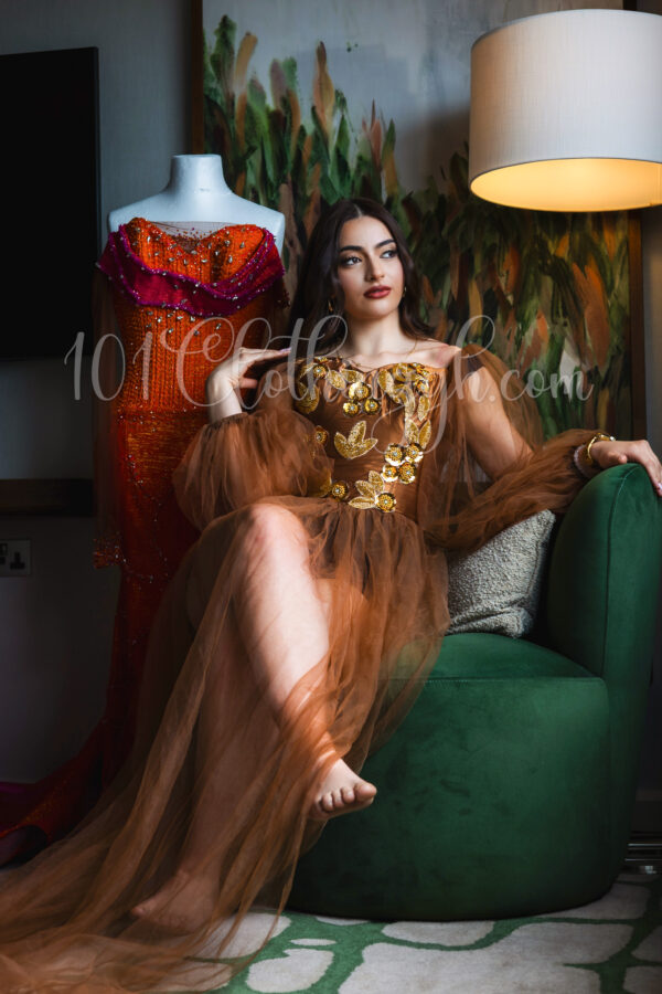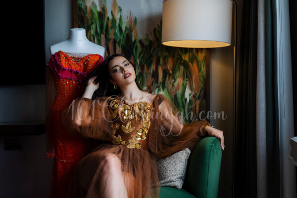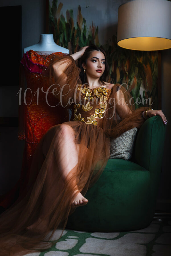 It is a corset body flawlessly embraces your figure, exuding an aura of elegance. Experience the perfect blend of style and sophistication with our bridal robe before walking down the aisle.
